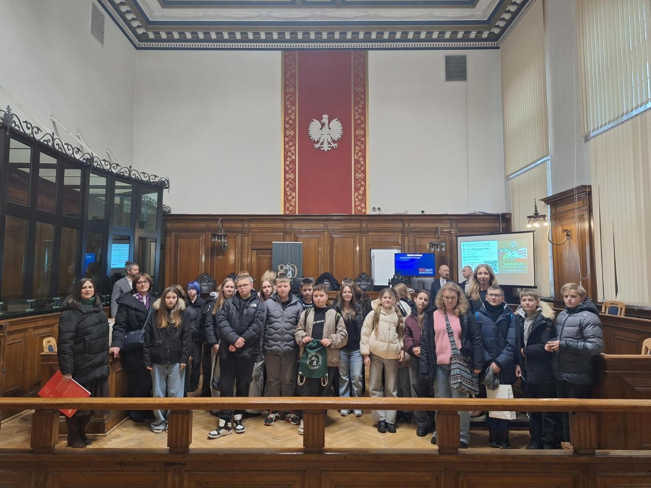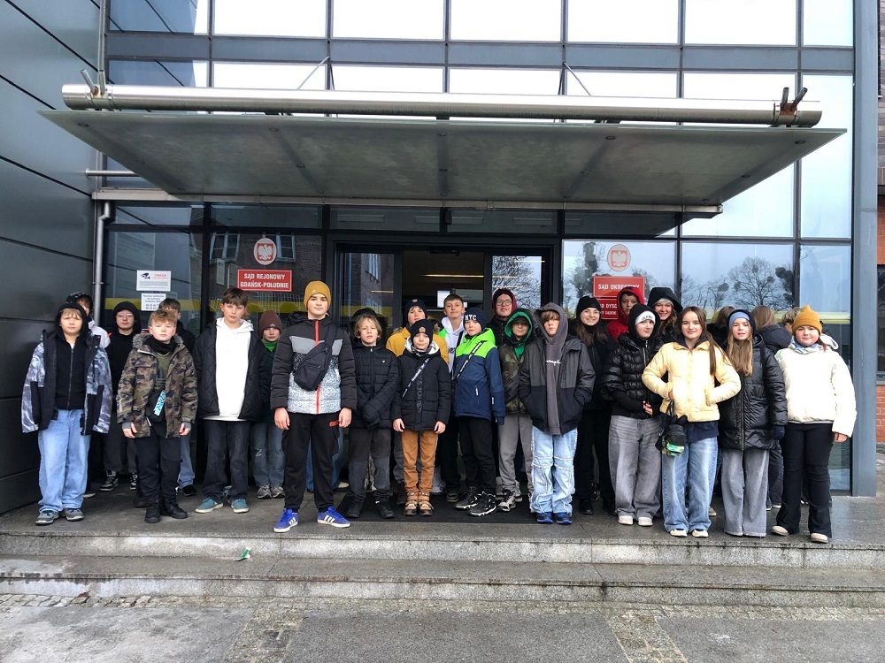 Uczniowie klas 6, 7 i 8 wybrali sie do Sądu Okręgowego w Gdańsku aby zapoznać się z pracą sędziego, prokuratora, prawnika.