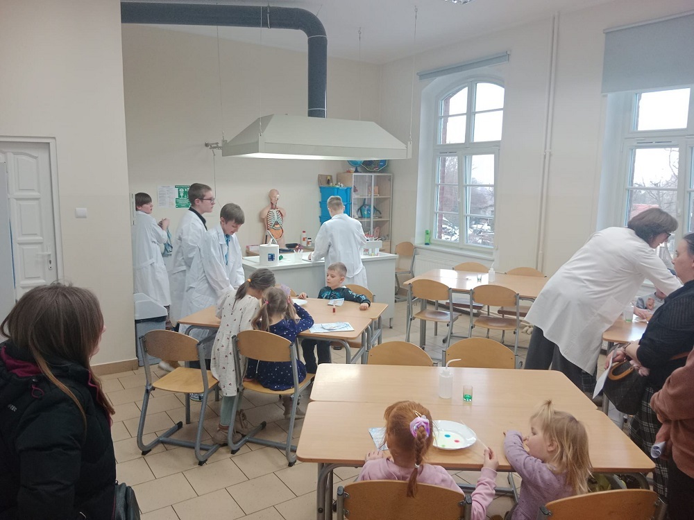 W piątek 27 lutego odbył się Dzień otwarty w naszej szkole. Na odwiedzających czekało wiele atrakcji. Zorganizowaliśmy zajęcia plastyczne, podczas których dzieci wykonywały kolorowe donaty z masy solnej, a także zajęcia muzyczne z wykorzystaniem bum bum rurek. Dużym zainteresowaniem cieszył się parkour, eksperymenty oraz imitacja lekcji szkolnych, dzięki którym dzieci mogły się poczuć jak prawdziwi uczniowie.