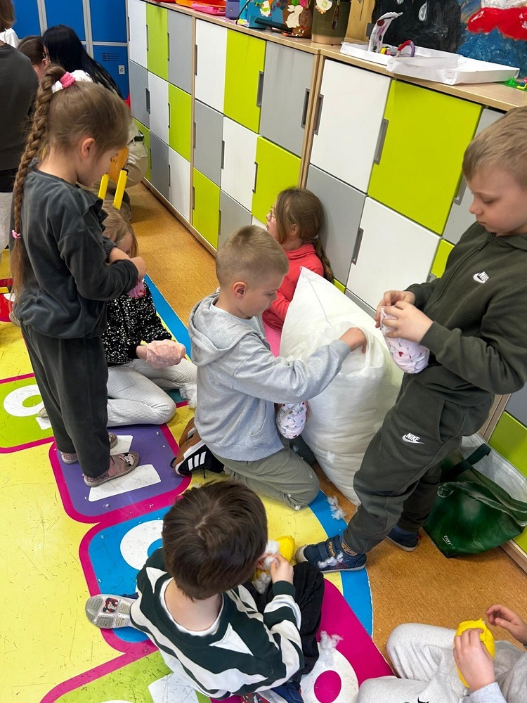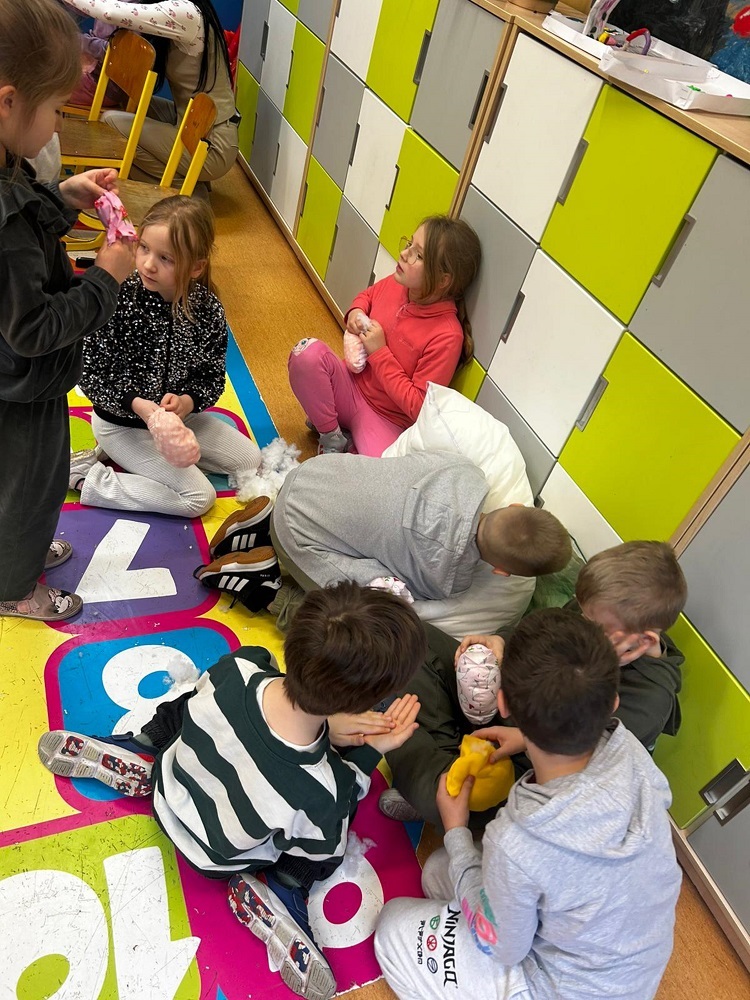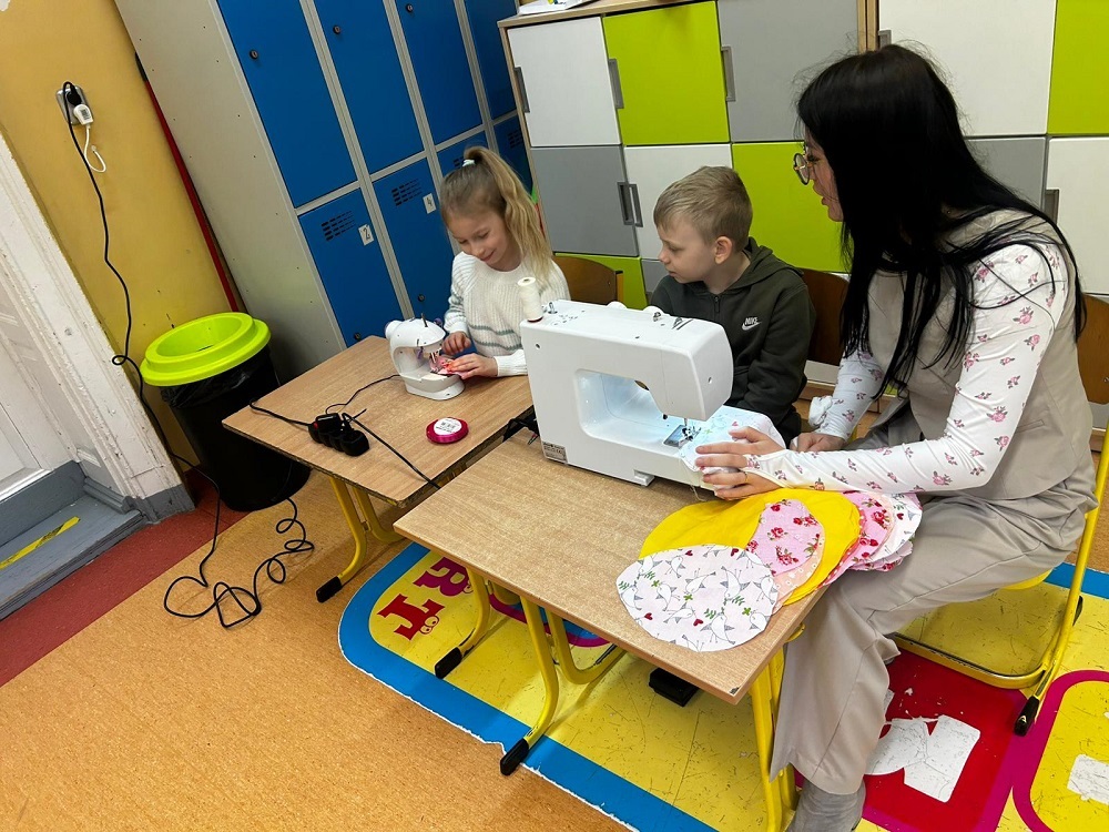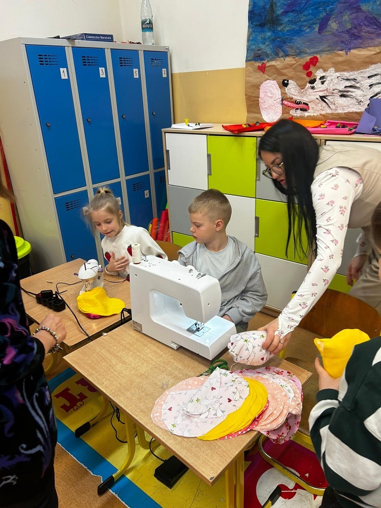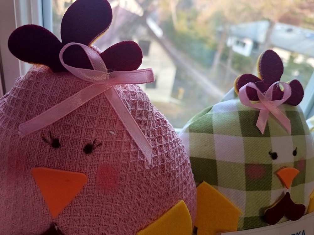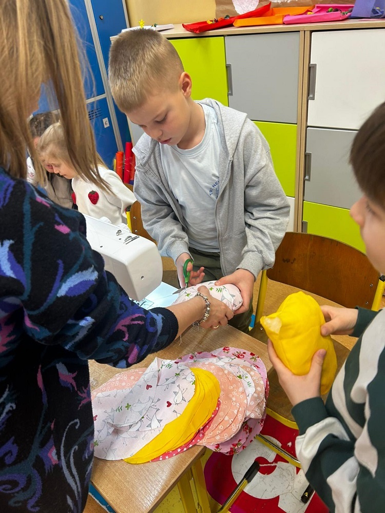Idzie wiosna. Klasy młodsze uczestniczyły w warsztatach szycia na maszynie. Wykonały mięciutkie pisanki.