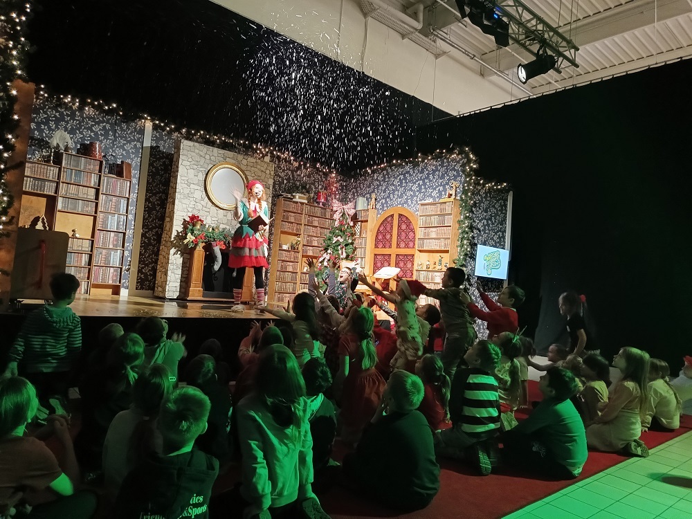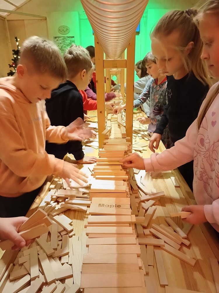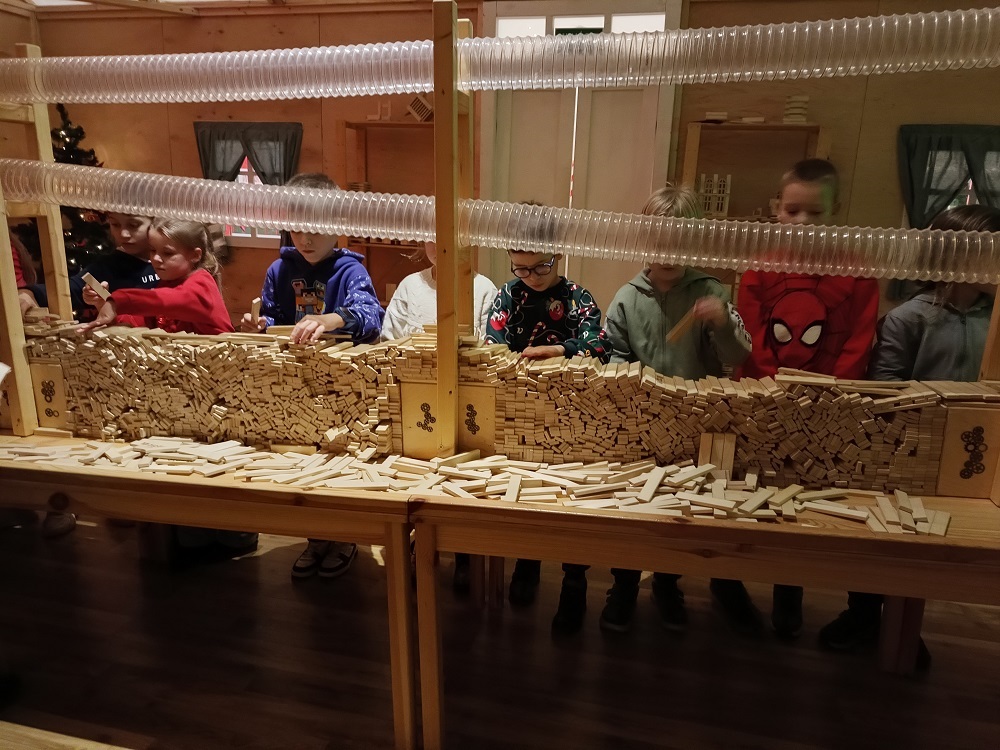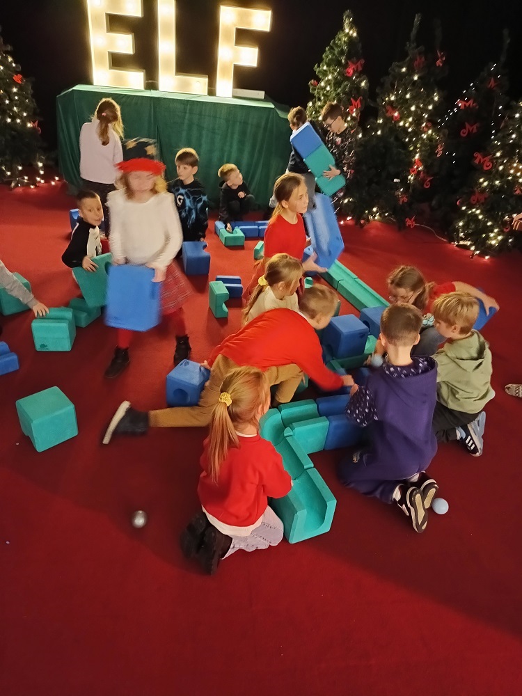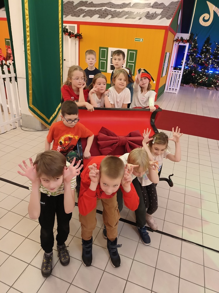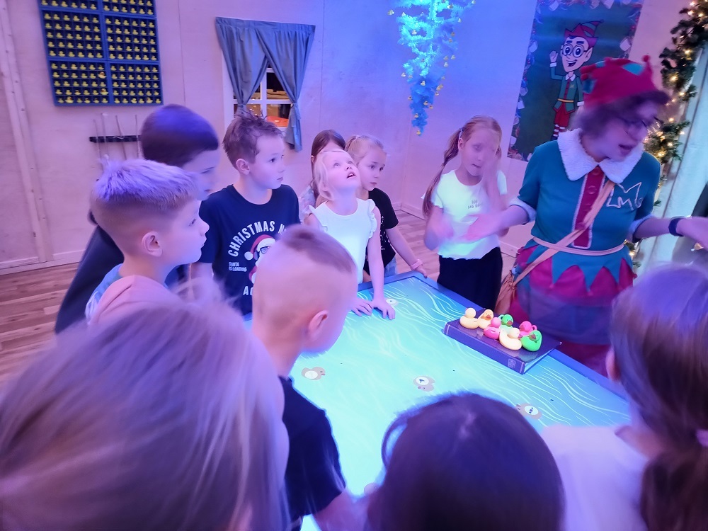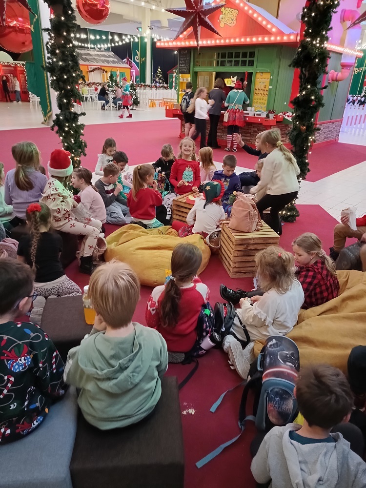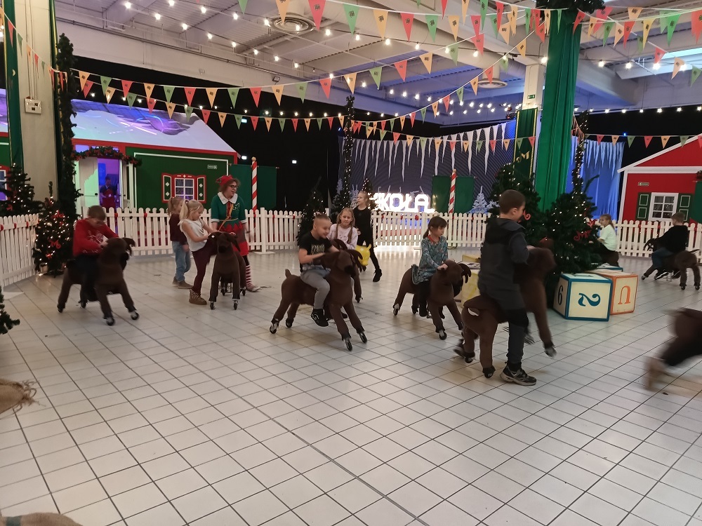 Uczniowie klas młodszych odwiedzili Krainę Elfów. Fabryka Świętego Mikołaja zrobiła na nich ogromne wrażenie. Zabawom nie było końca. Elfy oprowadzały milusińskich po przygotowanych stacjach. Można było budować tory z przeszkodami, mosty, zabawki, łowić kaczuszki, rzucać kulami w basenie, jeździć na reniferach, skakać na dmuchańcach, siedzieć w saniach Mikołaja, szukać ukrytych zagadek. Na koniec wszystkie dzieci spotkały samego Św. Mikołaja.