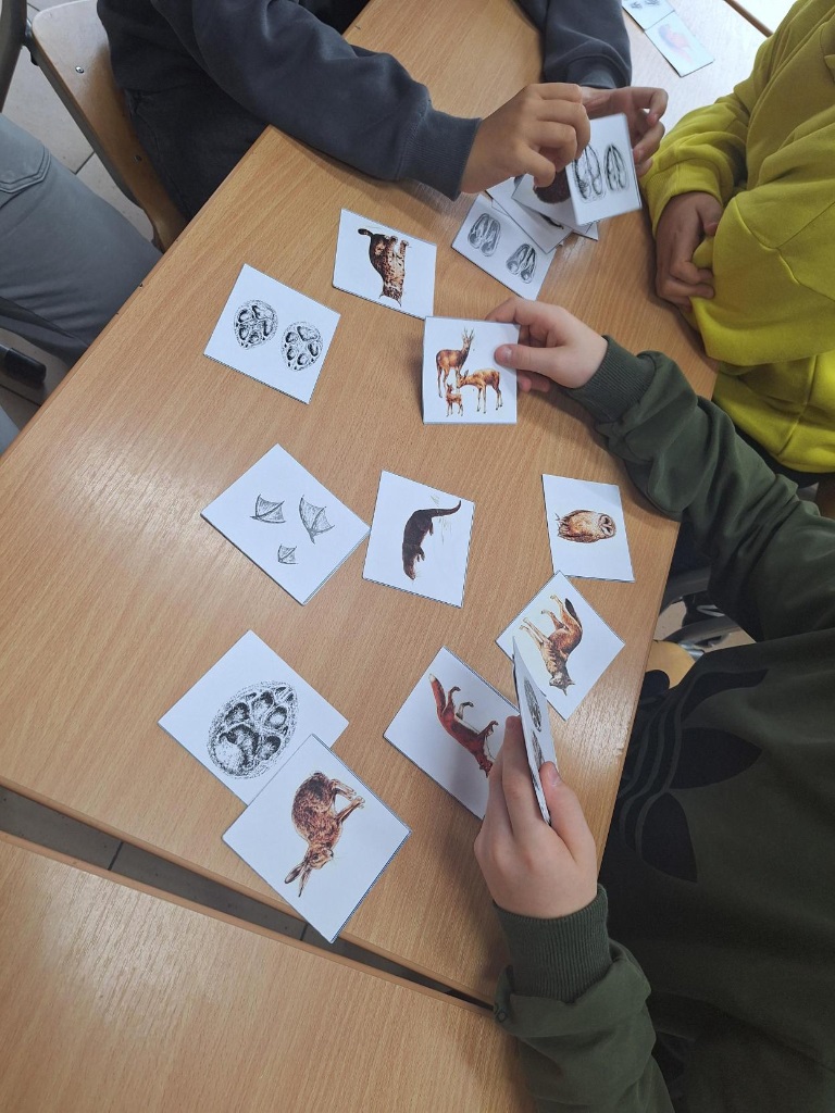 Edukatorki z "Przyrodnicze story" wprowadziły nas w świat tropienia. Dowiedzieliśmy się, jak rozpoznawać ślady zwierząt, takie jak tropy, odchody czy resztki pożywienia. Były poroża i fragmenty szkieletów. Rozpoznawaliśmy odgłosy zwierząt i ślady żerowania. Dokonywaliśmy obserwacji i analizy zdjęć tropów różnych zwierząt, od małych gryzoni po drapieżniki. Słuchaliśmy opowieści o życiu zwierząt, ich zwyczajach i sposobach przetrwania w naturalnym środowisku.