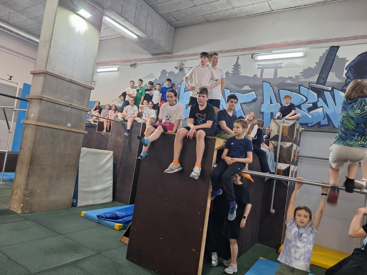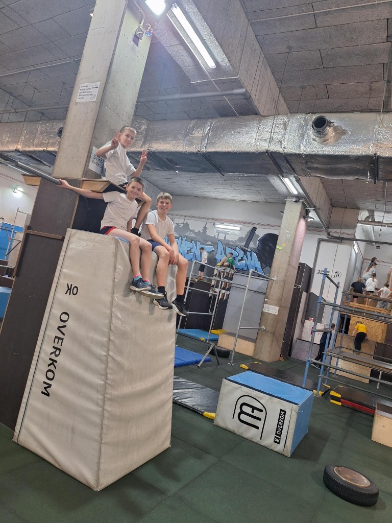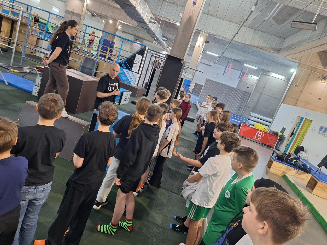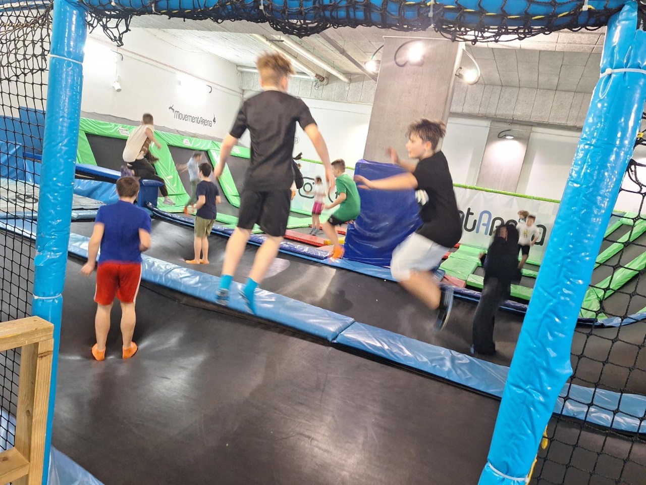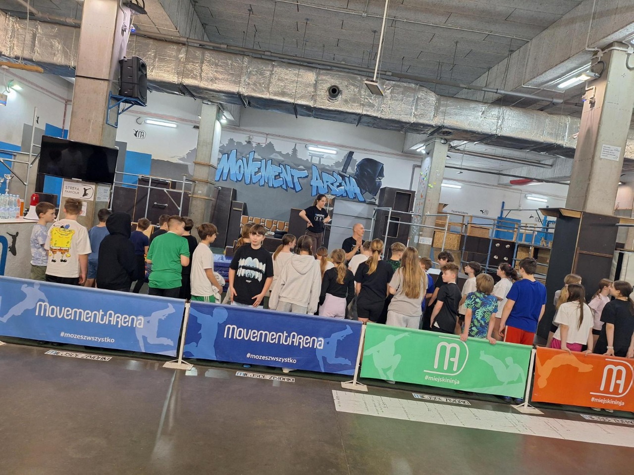 Uczniowie klas 5b, 6a i 6b wzięli udział w pełnych energii i dobrej zabawy zajęciach w parku trampolin Movement Arena Gdańsk. Po krótkiej rozgrzewce prowadzonej przez instruktorów uczestnicy rozpoczęli aktywności na różnych strefach obiektu - od dużych trampolin sportowych, przez poduchy powietrzne i ścieżki akrobatyczne, aż po tory przeszkód wymagające zręczności i dobrej kondycji.