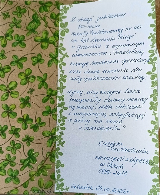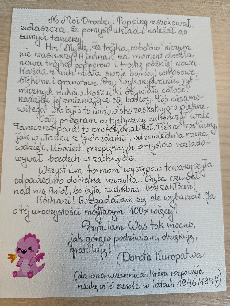 Jedna z pierwszych uczennic, późniejsza nauczycielka języka polskiego Pani Dorot Kuropatwa,