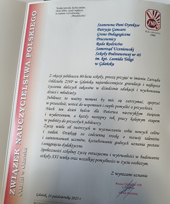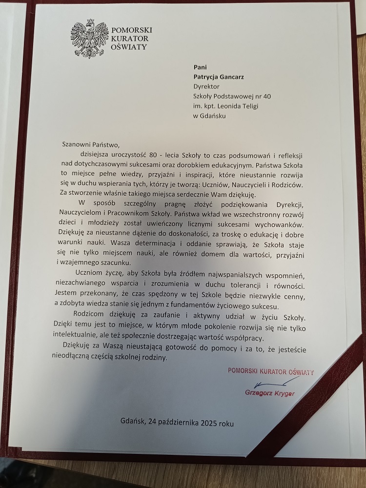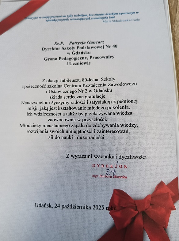 Dyrektor Wydziału Organizacji i Pragmatyki Zawodowej Nauczycieli KO w Gd. Pani Urszula Nazarko