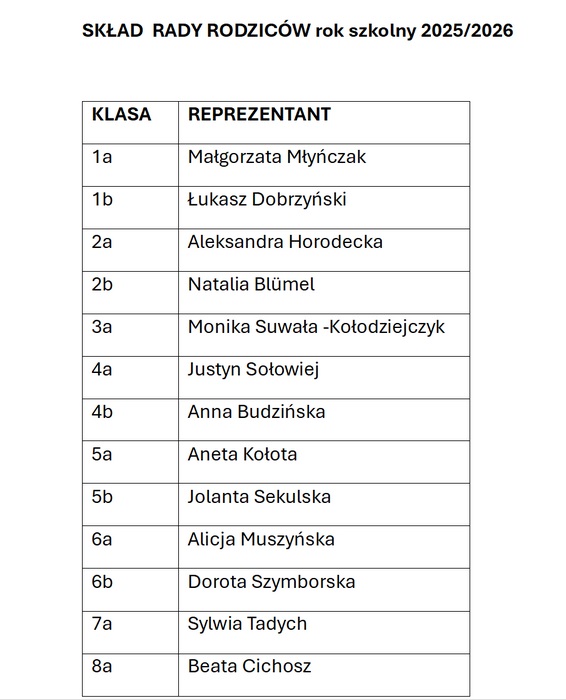 SKŁAD RADY RODZICÓW 2025 - 2026